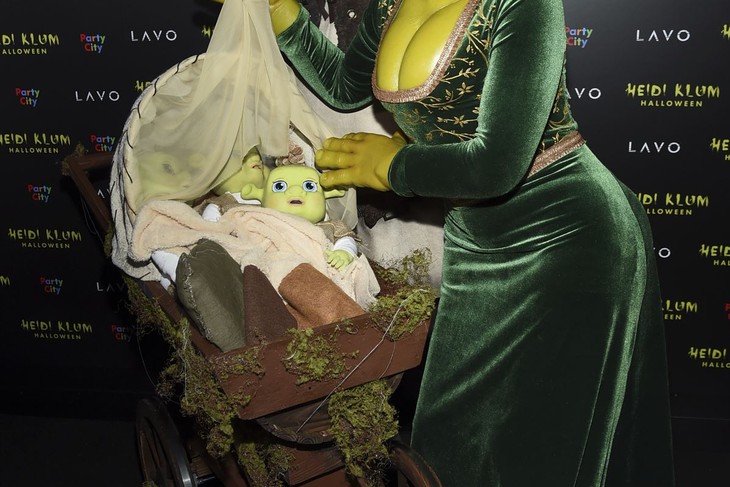 Model and television personality Heidi Klum, right, and boyfriend Tom Kaulitz dressed as Shrek and Princess Fiona arrive at her 19th annual Halloween party at Lavo New York on Wednesday, Oct. 31, 2018, in New York. (Photo by Evan Agostini/Invision/AP)
