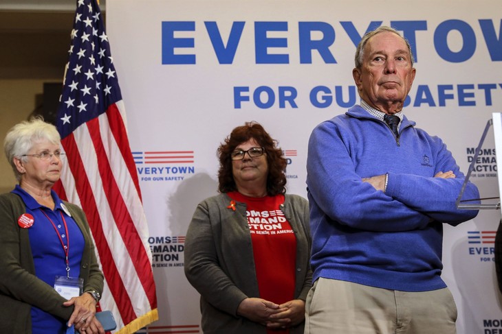 Former New York City Mayor Michael Bloomberg takes questions after speaking at a Moms Demand Action gun safety rally at City Hall in Nashua, N.H. Saturday, Oct. 13, 2018. (AP Photo/ Cheryl Senter)