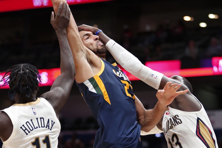 Every player, coach and ref takes a knee during the national anthem before the Pelicans-Jazz game pic.twitter.com/LZy1A6s8VM