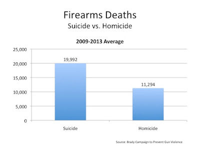 It is also true that firearms are much more likely to be used to commit suicide than to commit a homicide. In fact, almost 2/3 of deaths from firearms in the first five years of the Obama administration were from suicides.