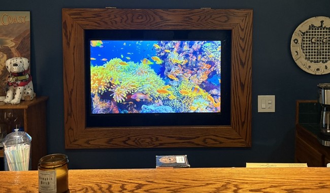 A few years ago, I had a brilliant idea. The former owner of our latest house had built a bar—my wife initially wanted to rip it out day one, but eventually came to like it—and he had made a built-in frame for a piece of art he wanted to showcase. He took the art with him, so we were left with a large empty square staring back at us. The perfect place for a fish tank—but I didn’t have a few extra thousand sitting around for such a big task. What if we put a cheap TV there and streamed an aquarium?