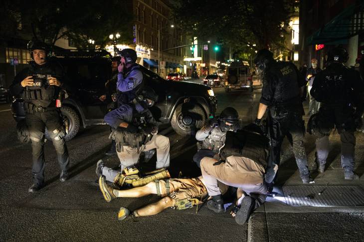 In reality, U.S. Marshals moved in to make the arrest after Portland PD and state agencies failed to apprehend him. That ended badly for Reinoehl, who reported pulled a gun and reportedly had a fairly large shoot-out with the authorities.