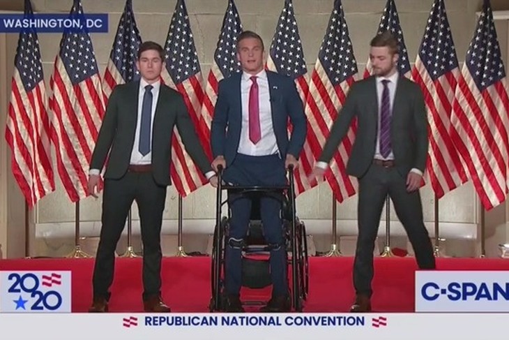 As hard as it is to select the worst take of the convention, this effort from PBS journalist Yamiche Alcindor is tough to beat. Yamiche has been especially bitter this week, but after getting bothered by the naturalization ceremony she really hit the depths to level criticism at candidate for North Carolina’s representative seat, Madison Cawthorn. If unfamiliar, Cawthorn is wheelchair bound, but after a gripping speech a pair of handlers came out and with their help and the aid of a brace he stood to say The Pledge of Allegiance.