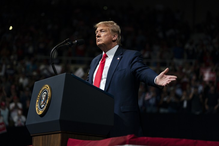 President Donald Trump speaks during a campaign rally at Veterans Memorial Coliseum, Wednesday, Feb. 19, 2020, in Phoenix. (AP Photo/Evan Vucci)
