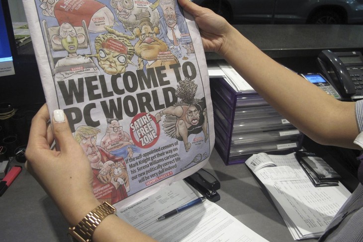 Melbourne-based newspaper Herald Sun displays a controversial cartoon of Serena Williams that has been widely condemned as a racist depiction of the tennis great, in Melbourne, Australia, Wednesday, Sept. 12, 2018. The newspaper defended its cartoonist Mark Knight’s depiction of Williams and is asserting the condemnation, which has come from all parts of the world, is driven by political correctness. (AP Photo)