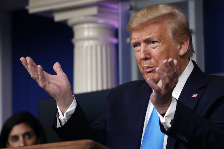 President Donald Trump speaks about the coronavirus in the James Brady Press Briefing Room of the White House, Tuesday, April 7, 2020, in Washington. (AP Photo/Alex Brandon)