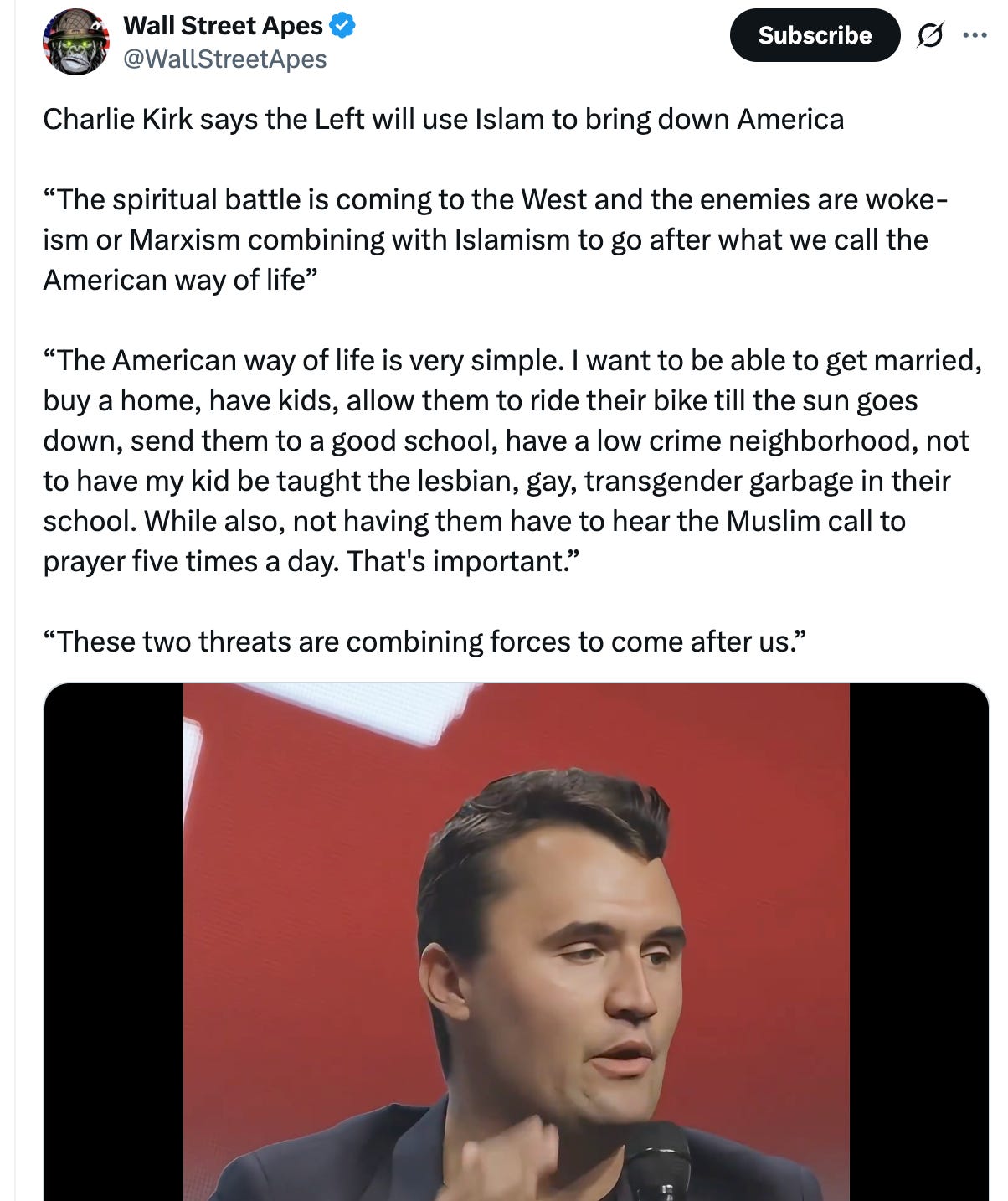 Out of the possible universe of reactions to Erika Kirk's speech, you have perhaps chosen one of the worst available.