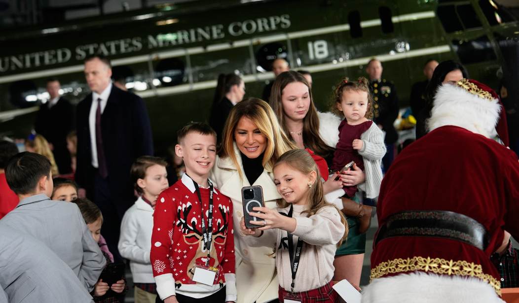 Inside a decorated and historic hangar, Melania gave emarks to hundreds of children, helped distribute toys, visited activity stations, and spent time with families whose loved ones serve both at home and abroad.