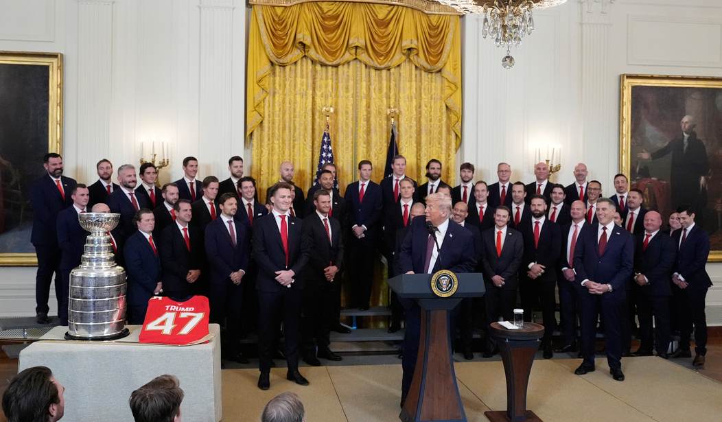 “Not only did you live up to the sky-high expectations, you gave us perhaps the most dominant playoff run in NHL history... you led the Finals for over 255 minutes, the most of any team in NHL history, and you denied Canada the Stanley Cup for the 32nd straight year,” Trump explained.