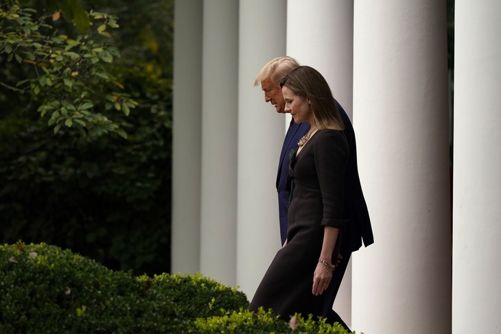 As I suggested in the headline, it’s “almost” as if they’re locked in a to-the-death steel cage match with one another over which of them can spew the vilest venom against this woman and, of the course, the President — the devil’s spawn, as it were — who nominated her to the Supreme Court to replace the saintly Ruth Bader Ginsburg.