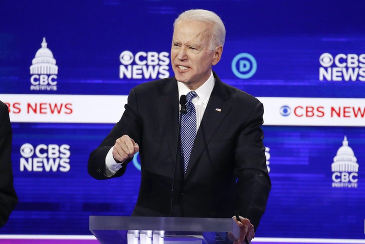 Democratic presidential candidates,vformer Vice President Joe Biden, participate in a Democratic presidential primary debate at the Gaillard Center, Tuesday, Feb. 25, 2020, in Charleston, S.C., co-hosted by CBS News and the Congressional Black Caucus Institute. (AP Photo/Patrick Semansky)