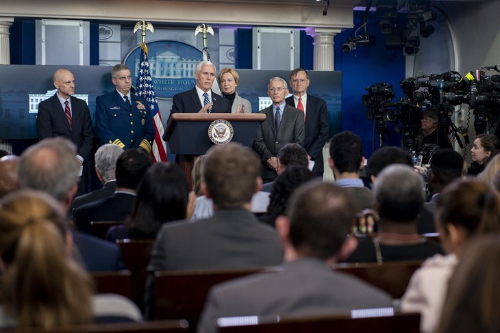 Vice President Mike Pence, joined by members of the White House Coronavirus Task Force, speaks to reporters Friday, March 6, 2020, in the James S. Brady Press Briefing Room of the White House. (Official White House Photo by D. Myles Cullen)