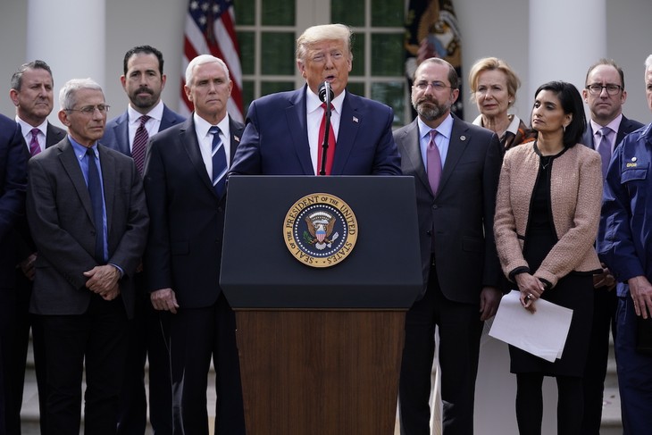 President Donald Trump speaks during a news conference about the coronavirus in the Rose Garden of the White House, Friday, March 13, 2020, in Washington. (AP Photo/Evan Vucci)