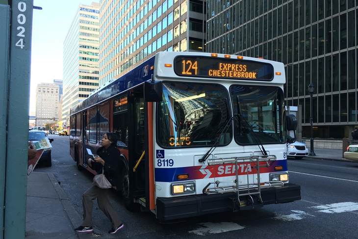 A woman gets off a SEPTA bus Monday, Nov. 7, 2016, in Philadelphia. Philadelphia’s crippling weeklong transit strike ended early Monday, assuring that all buses, trolleys and subways will be up and running by Election Day. (AP Photo/Megan Trimble)