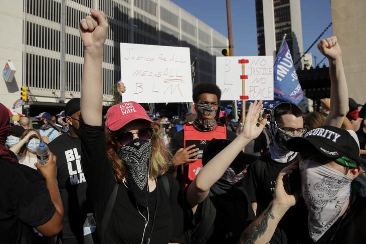 MSNBC is reporting one of the gates to the rally has been closed due to BLM protesters and the National Guard is trying to push the crowd back. They also are reporting armed individuals in Hawaiian shirts are gathering near the gate. pic.twitter.com/Mc1TabtVCH