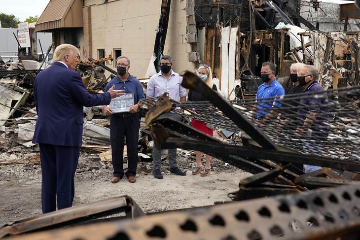 President Trump just inspected damage in Kenosha from what CNN called a "fiery but mostly peaceful protest". No I’m not joking CNN really did that. President Trump promises to help Kenosha residents rebuild. pic.twitter.com/cXQZF0wZTK