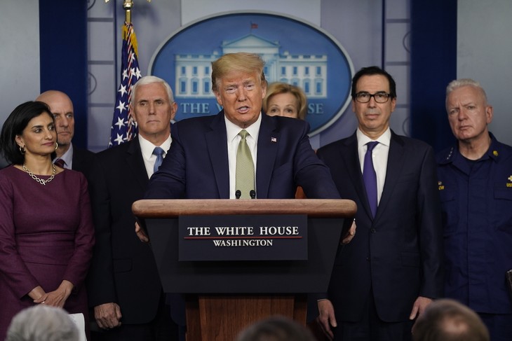President Donald Trump speaks during a press briefing with the coronavirus task force, at the White House, Tuesday, March 17, 2020, in Washington. (AP Photo/Evan Vucci)