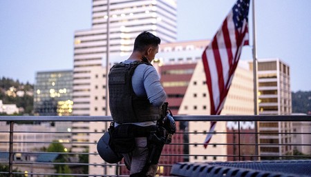 Trump Supporter Philip Anderson Stands at Fence to Stop the Violence at the Federal Courthouse in Portland